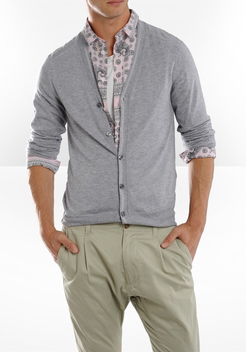 Mens 55%Cotton 45%silk 5%cashmere 14gg knitted cardigan